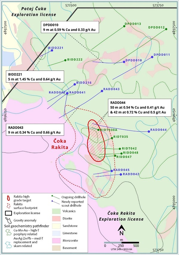 - Rastući potencijal za istraživanje: DPM nastavlja svoj program bušenja fokusiran na proširenje granica Čoka Rakite, koja ostaje otvorena ka severoistoku i jugozapadu, a takođe agresivno prati dodatne skarnovske mete na istražnoj dozvoli Čoka Rakita, kao i na tri dodatne licence severno i južno.